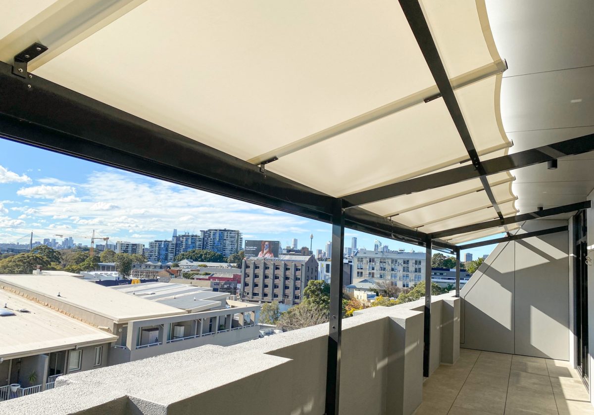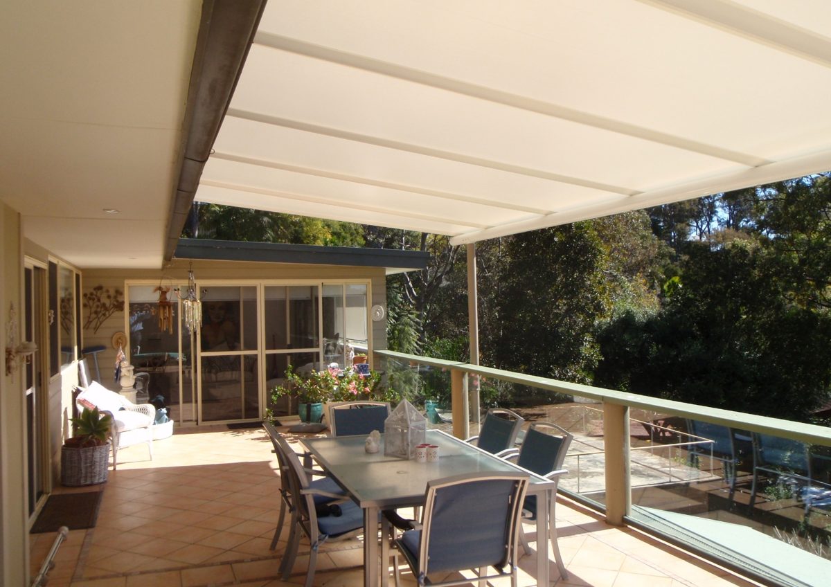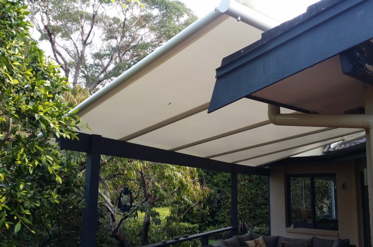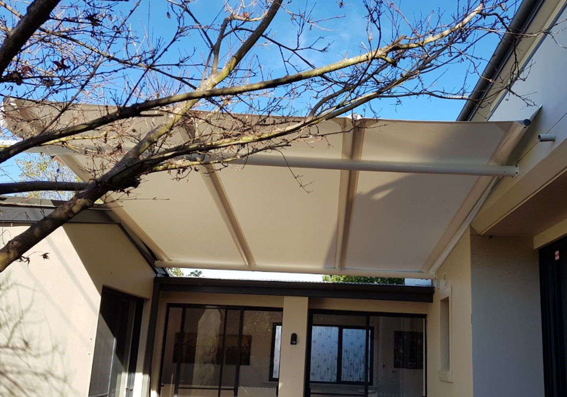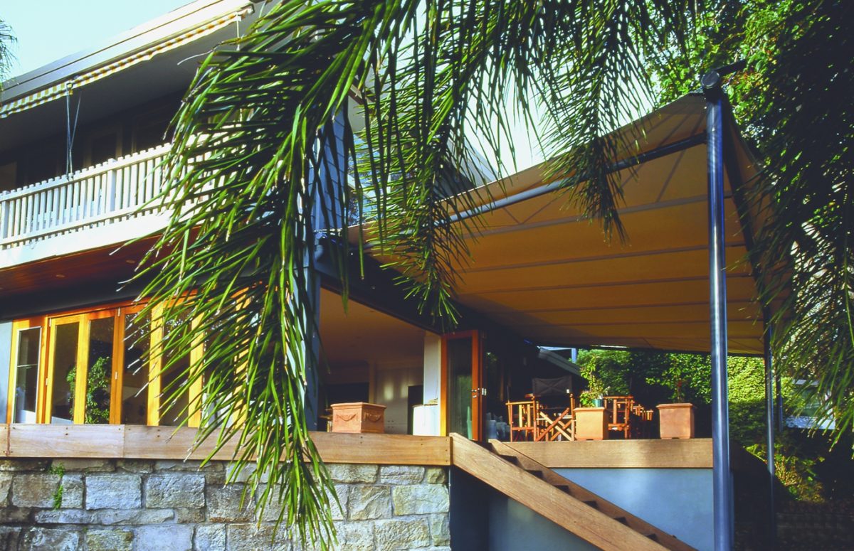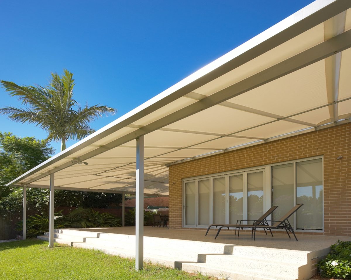 A straight batten awning is a fixed or demountable fabric structure that creates an outdoor room. They work well with existing flat or pitched roof lines and create a cool and spacious outdoor entertaining area. They are an exceptionally strong design that uses a unique frame to support and tension the awning. There is no limit to the maximum width of a straight batten awning. The maximum length of the battens is typically 12.0m, however longer lengths are possible.